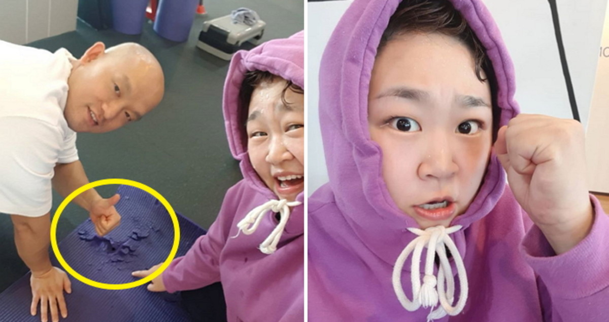 실제 홍윤화가 공개한 사진에는 매트에 구멍이 난 모습이 포착됐다. 그동안 얼마나 열심히 운동에 매진했는지 알 수 있는 대목이다.