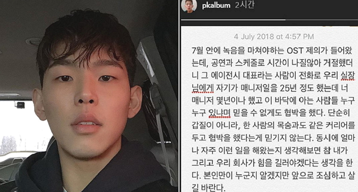 지난 4일 폴킴은 인스타그램 스토리를 통해 O.S.T 작업을 거절했다가 협박을 받은 사연을 토로했다.