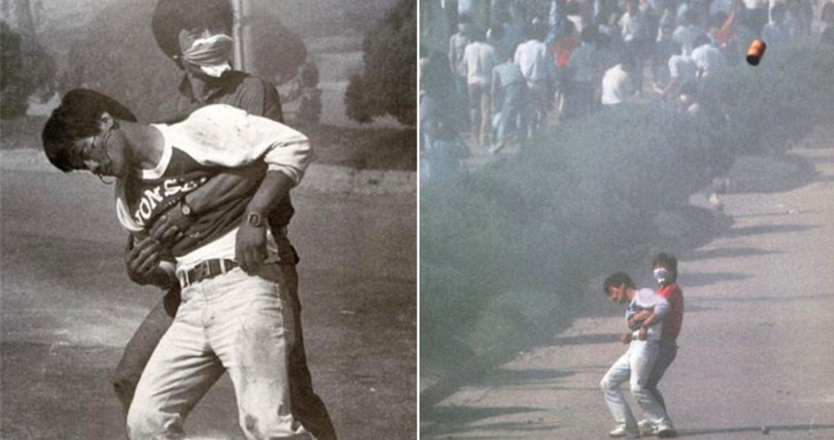 행진하는 학생 무리에 전경들은 무자비했다. 학생들을 에워싸고 최루탄을 쏘기 시작했다. 오후 4시 40분, 한 전경이 수평으로 쏜 최루탄은 친구들을 지키려고 뛰어다니던 스무 살 청년 이한열의 머리로 날아들었다.