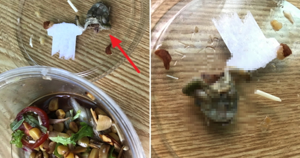 입 속에서 나온 건 다름 아닌 몸통 아래쪽이 잘린 개구리 반쪽 사체였다. 깜짝 놀란 A씨는 개구리 사체와 함께 남은 샐러드를 들고 매장을 찾았다.