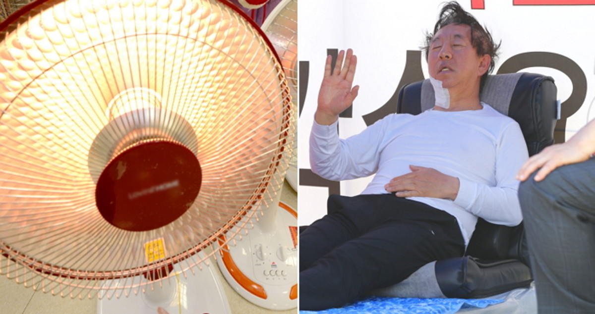 김 원내대표가 30도를 넘나드는 습한 무더위에도 난로를 곁에 둔 사연은 무엇일까. 그는 "2달 전 했던 단식 때문"이라고 취재진에게 이유를 밝혔다.