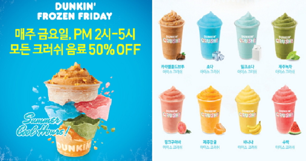 '프로즌 프라이데이'는 던킨도너츠의 대표 음료 '크러쉬' 제품을 50% 할인된 가격에 판매하는 행사다.
