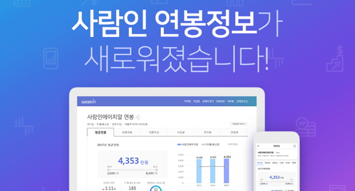 6일 사람인에이치알이 운영하는 구인구직 매칭 플랫폼 사람인은 '연봉'에 대한 궁금증을 해결하기 위해 AI기반의 빅데이터 분석 기술을 적용해 연봉 서비스를 대대적으로 개편했다고 밝혔다.