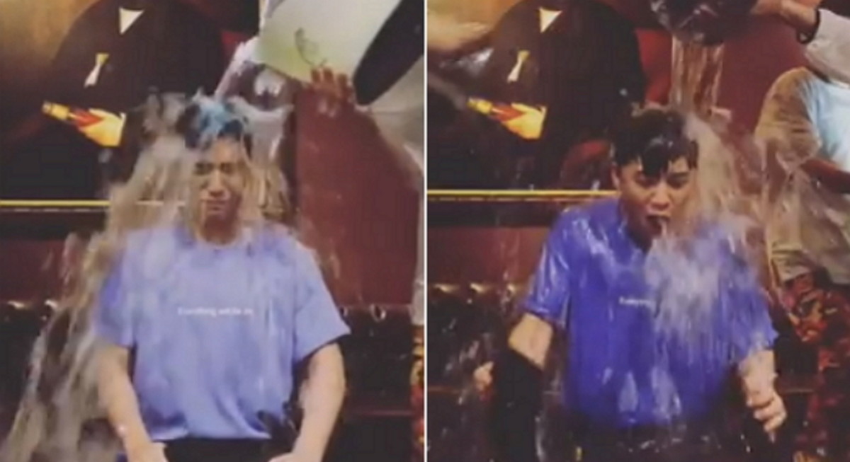 곧이어 네 명의 남자가 승리에 얼음물을 쏟아부었고 승리는 "그만해"라고 소리쳐 보는 이들의 웃음을 자아냈다.
