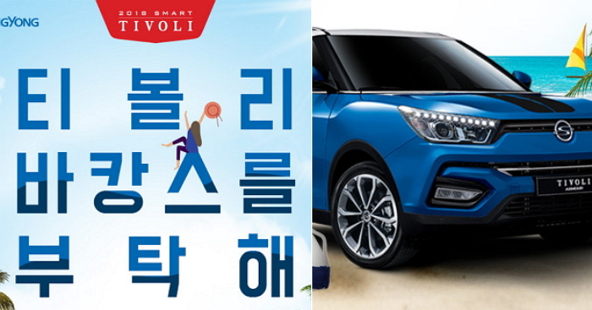 쌍용차는 또 바캉스 시즌을 맞아 티볼리 브랜드 구매 고객들을 대상으로 여행권 및 여행 필수 아이템을 선물하는 감사 이벤트 '티볼리 바캉스를 부탁해'를 실시한다.