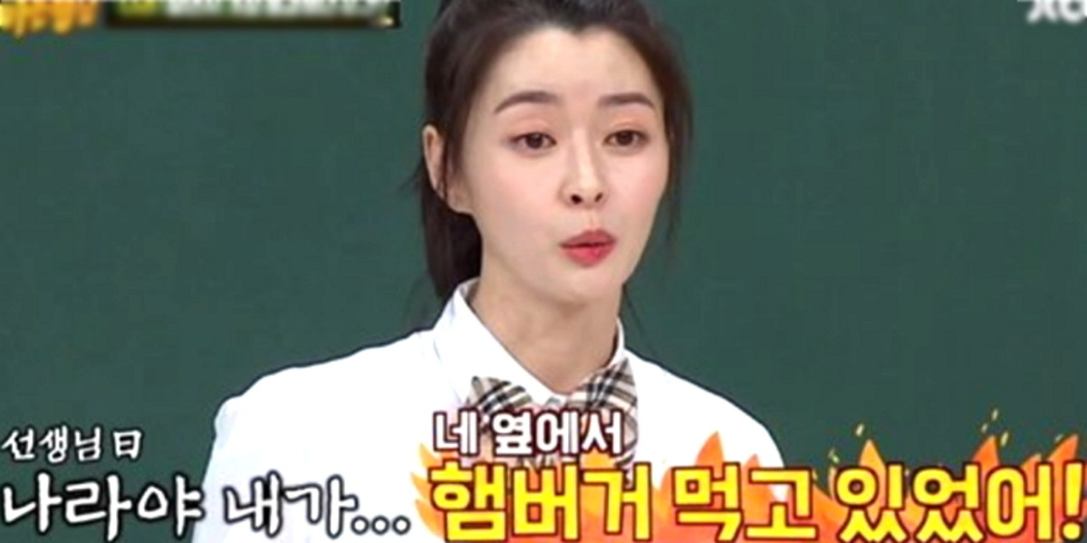 그러자 선생님이 "나라야 내가 너 옆에서 햄버거를 먹고 있었어"라며 충격적인 말을 했다.