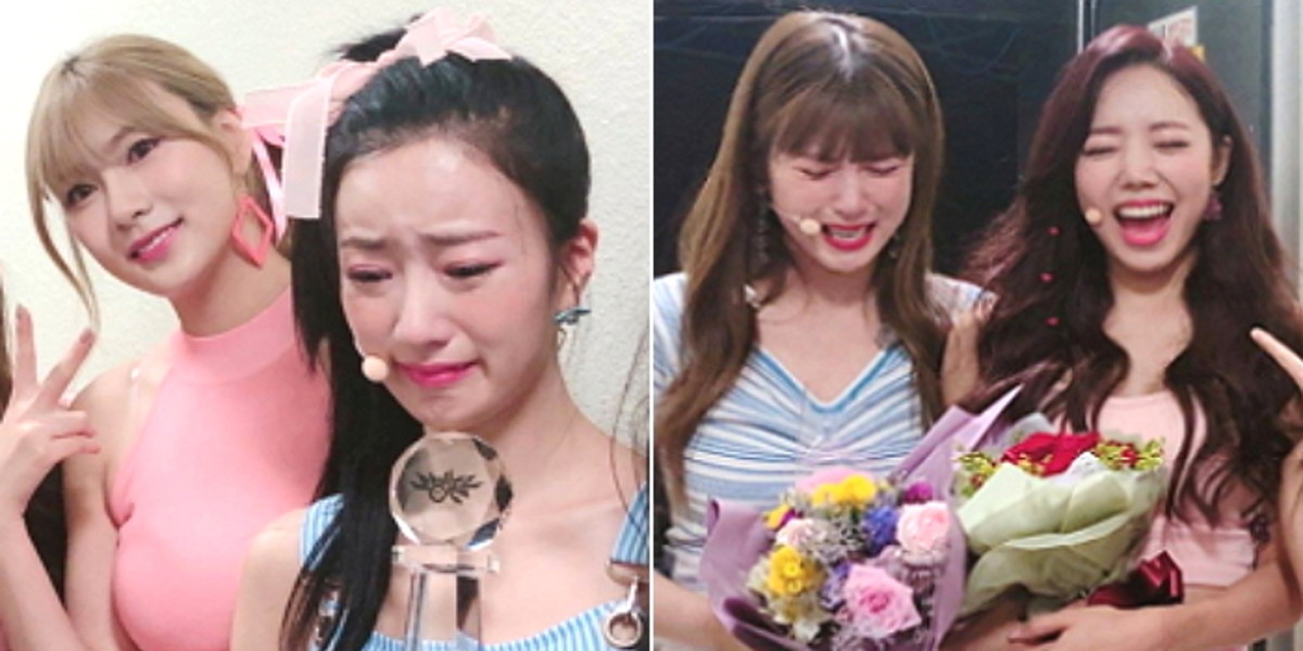 공개된 사진 속에는 꽃다발과 트로피를 꼭 쥔 채 아이처럼 눈물을 쏟아내는 박초롱과 윤보미의 모습이 담겼다.