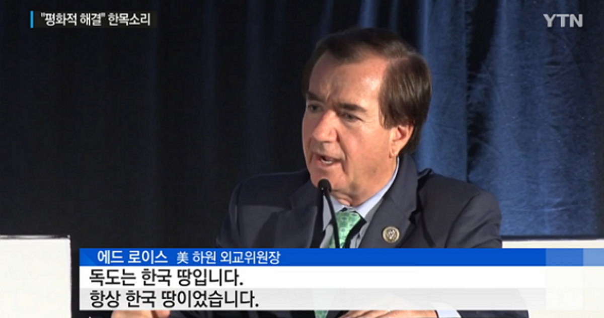 이날 에드 로이스는 연설 중에 "독도는 한국 땅입니다. 독도는 항상 한국 땅이었습니다"라고 발언했다.