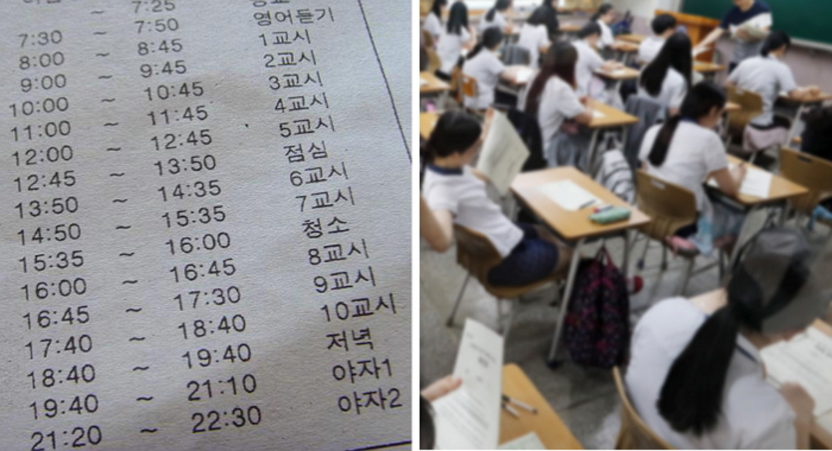 심지어 하루의 반이 넘는 시간 동안 머물러야 하는 학교에서 쉴 수 있는 시간은 점심, 저녁 시간을 다 합쳐도 채 4시간도 되지 않았다.