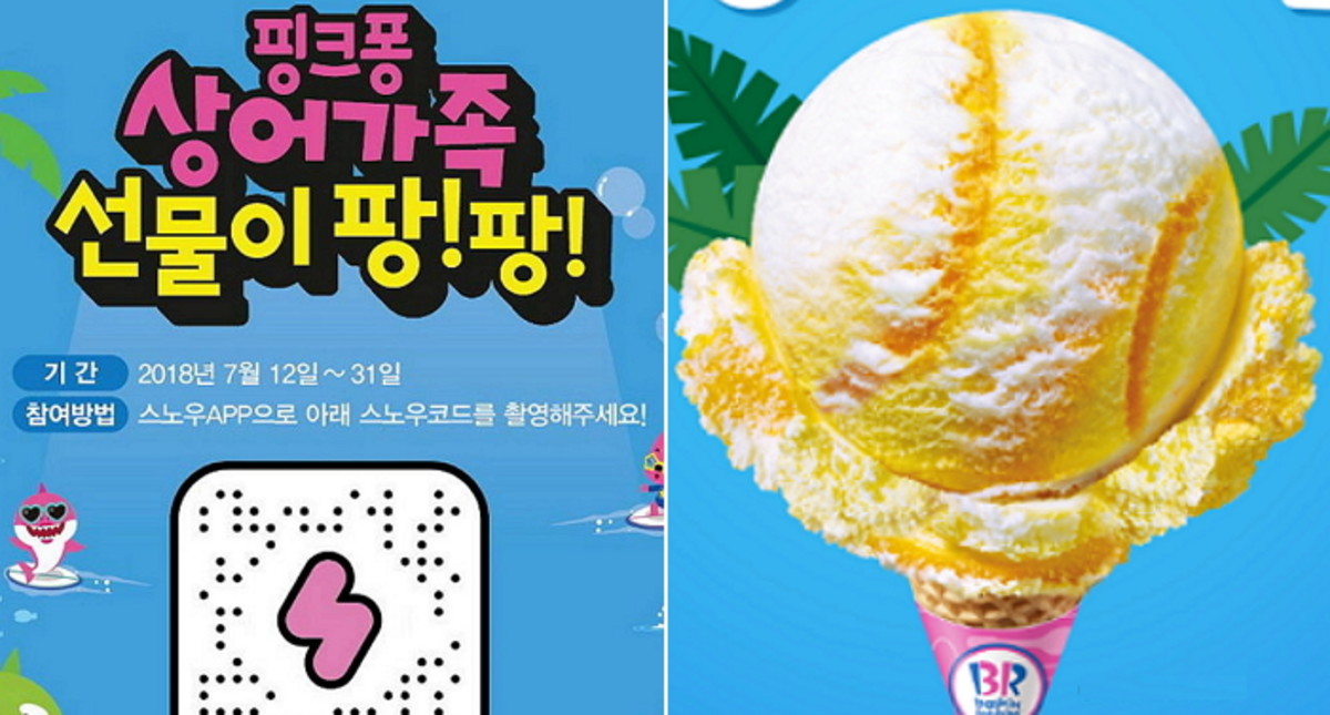 16일 SPC그룹이 운영하는 배스킨라빈스가 이달 31일까지 카메라 앱 '스노우(SNOW)'와 제휴해 '핑크퐁 상어가족 선물이 팡팡!' 프로모션을 진행한다고 밝혔다.