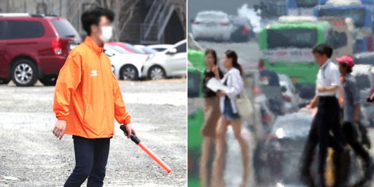 그는 "주차 안내를 하다 보니 고객님들 계시는 곳은 못 간다"며 "1층 천막이 있는 주차장에 들어가 잠시 쉰다"고 전했다. 열사병이 우려될 정도로 열악한 근무환경이다.