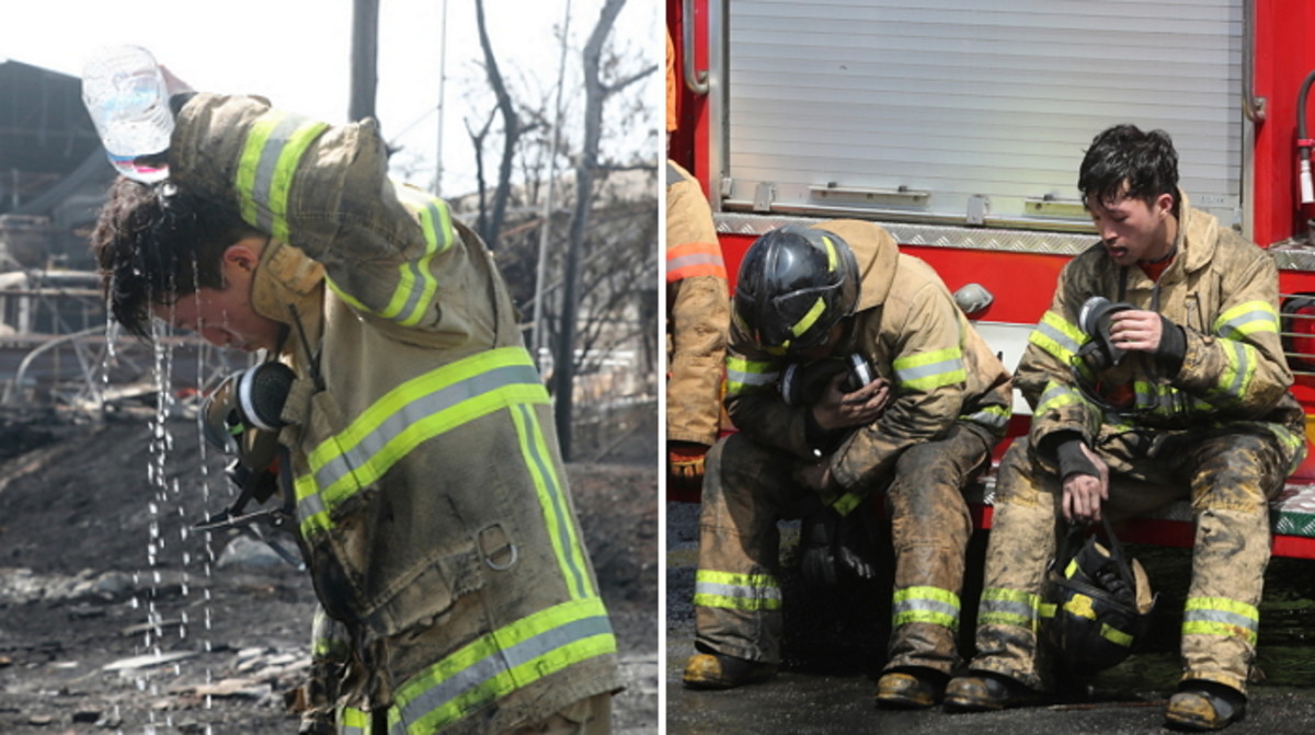 폭염 속에서 이뤄진 장시간 화재 진압에 소방대원들도 완전히 지쳤다.