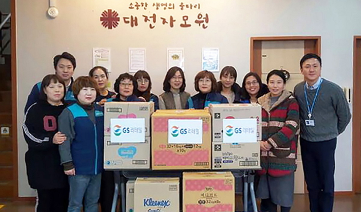GS리테일이 운영하는 GS수퍼마켓 대전송강점에는 고객들의 자발적인 참여로 함께 만든 봉사활동 조직 '대전송강 GS나누미'가 활발한 활동을 펼치고 있다.