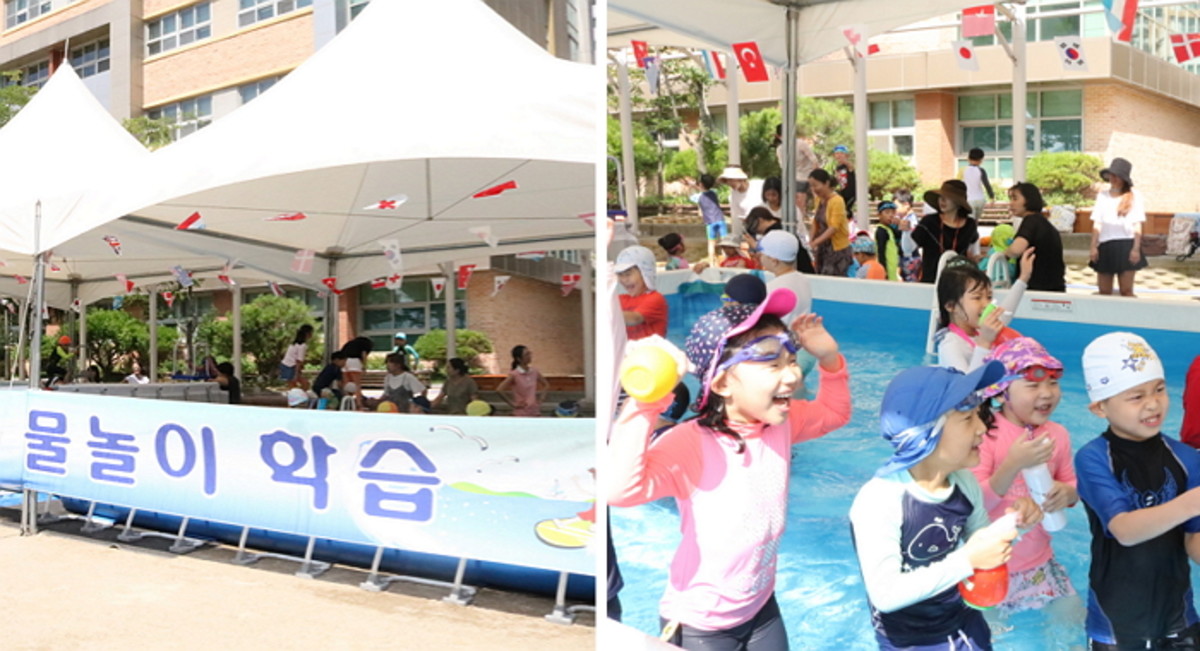 그 덕분에 산의초 학생들은 더운 여름날 교실 밖 풀장에서 신나게 물놀이를 즐길 수 있게 됐다.