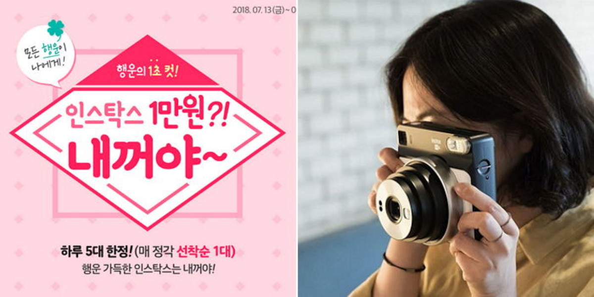 오는 7월 20일에는 인스탁스 미니 50's 5대, 27일에는 인스탁스 SP-2 5대, 내달 3일에는 인스탁스 미니70 5대, 내달 10일에는 인스탁스 와이드300 5대 등 총 25대의 인스탁스 제품을 1만원에 판매한다.