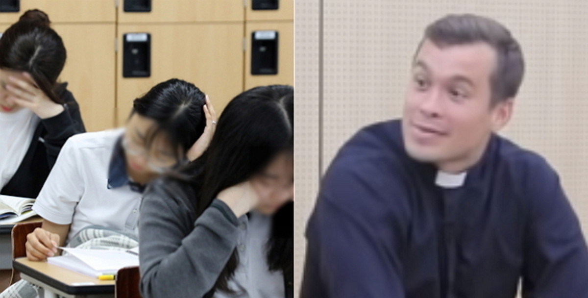 영상에서 케임브리지대를 졸업한 제니와 크리스 신부는 영국남자 조쉬와 함께 수능을 준비하는 학생들이 모인 한 교실을 찾았다.