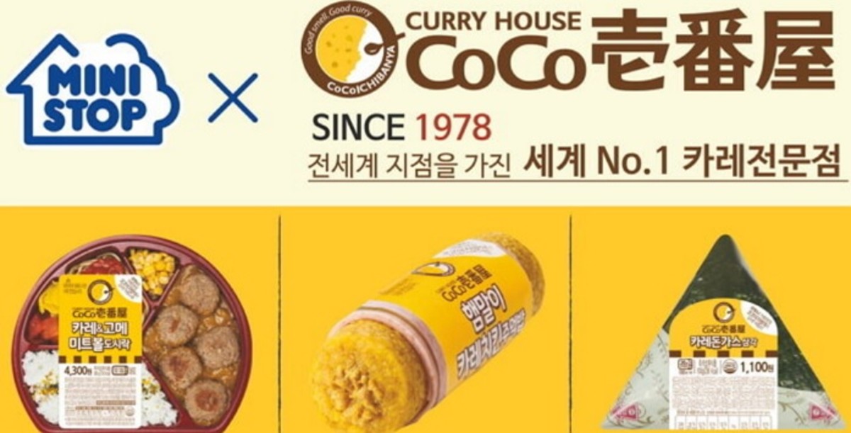 미니스톱이 CoCo이찌방야와 협업해 출시하는 제품은 '카레&고메미트볼 도시락', '카레&돈가스 삼각', '햄말이 카레치킨 주먹밥' 3종이다.