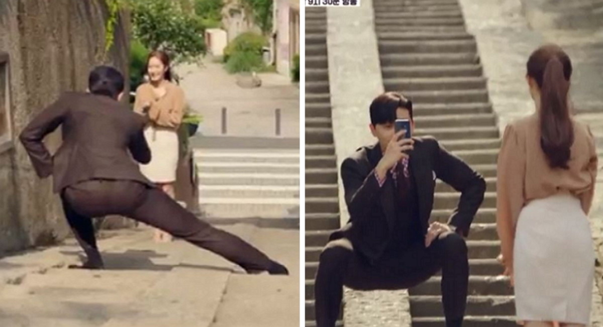 정장을 입은 채로 긴 다리를 쫙 찢거나 땅바닥에 몸이 닿을 정도로 납작 숙이는 등 미소의 인생샷을 찍어주기 위해 영준은 수고를 아끼지 않았다.