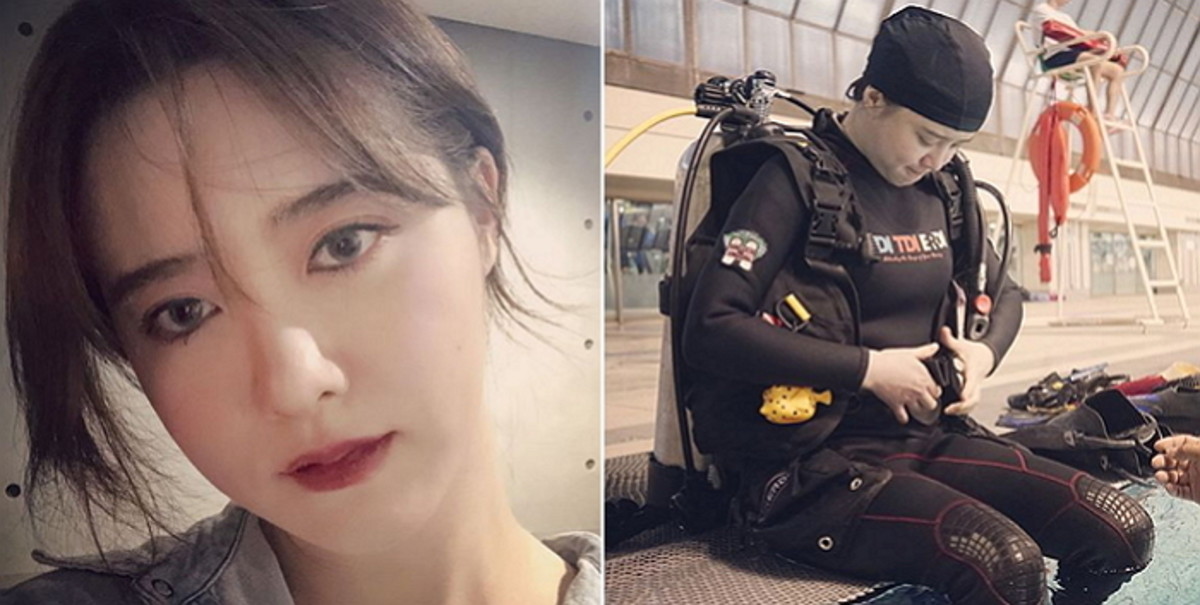 이윽고 구혜선은 오리발과 스노클링 물안경을 어떻게 착용하는지 등을 설명하는 강사의 말을 경청한 뒤 입수했다.