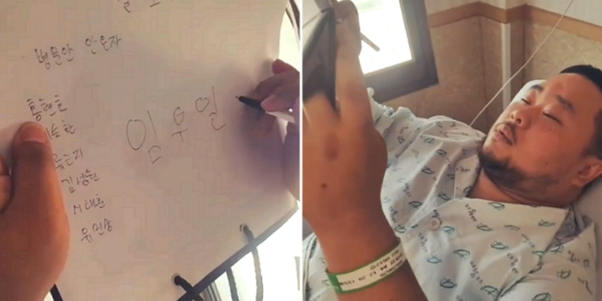 그는 병문안을 오지 않은 동료 개그맨들의 이름을 적어가며 '데스토트'를 작성하고 있었다.