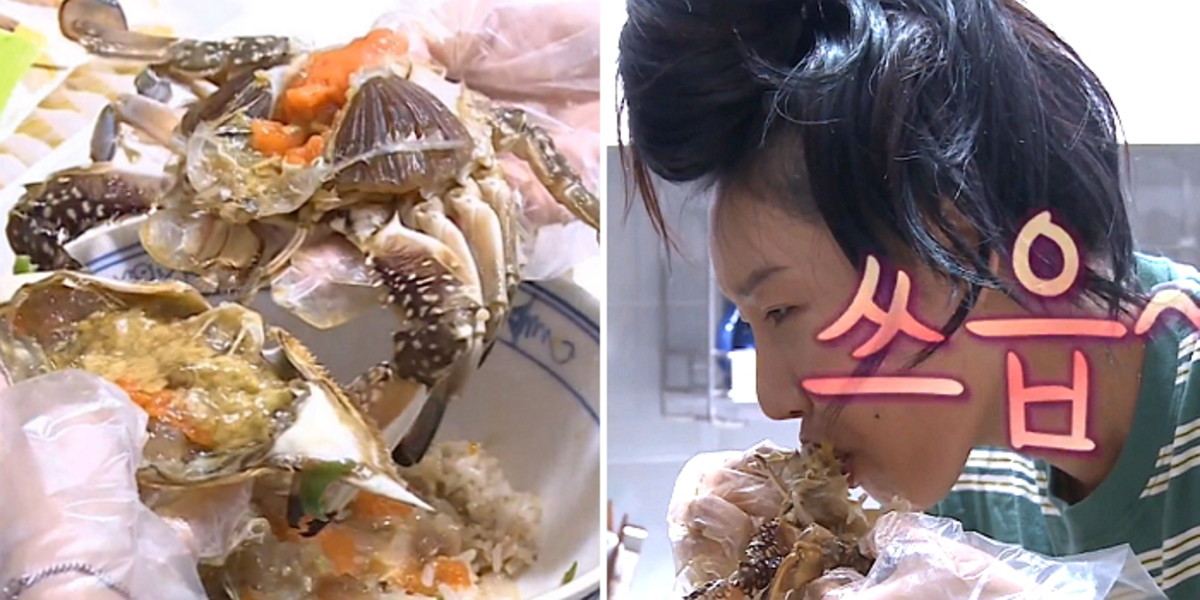 화사는 간장게장이 도착하자마자 "미쳤다"고 외치며 분주하면서도 능숙한 손놀림으로 간장게장을 살을 발라 먹기 시작했다.