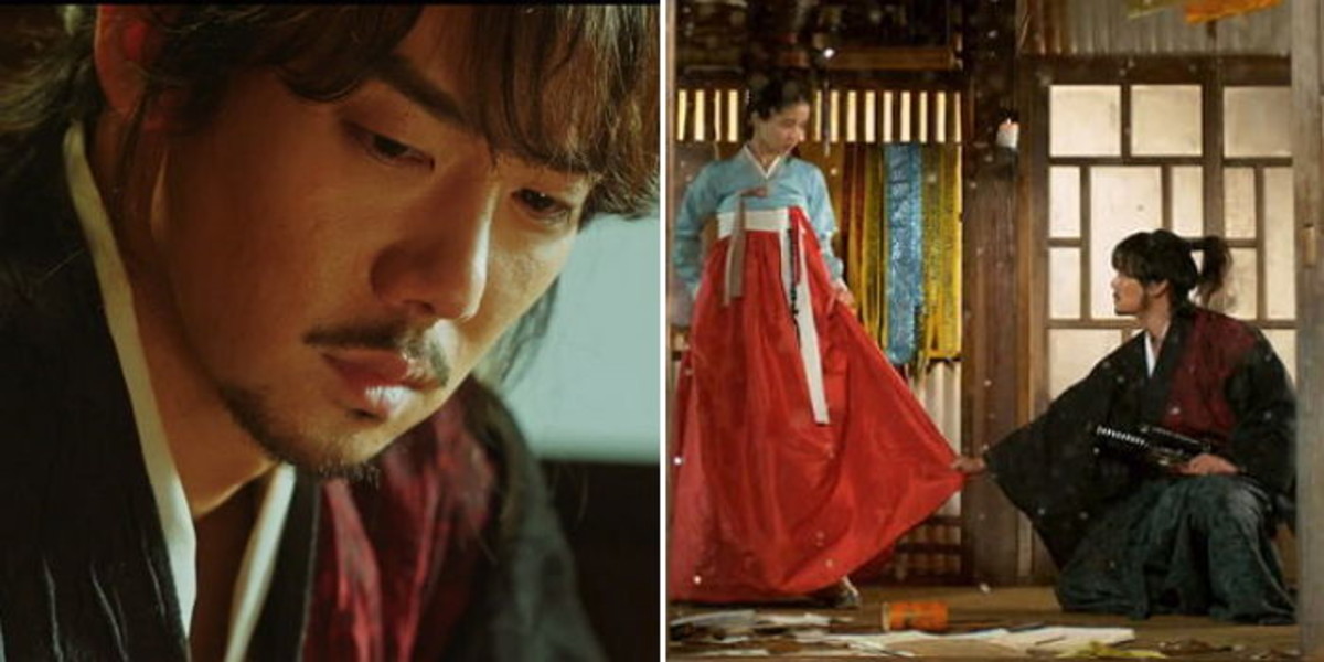 동매는 자신의 손등으로 흐르는 애신의 치맛자락을 뚫어지게 보다가 손으로 붙잡아 버렸다.