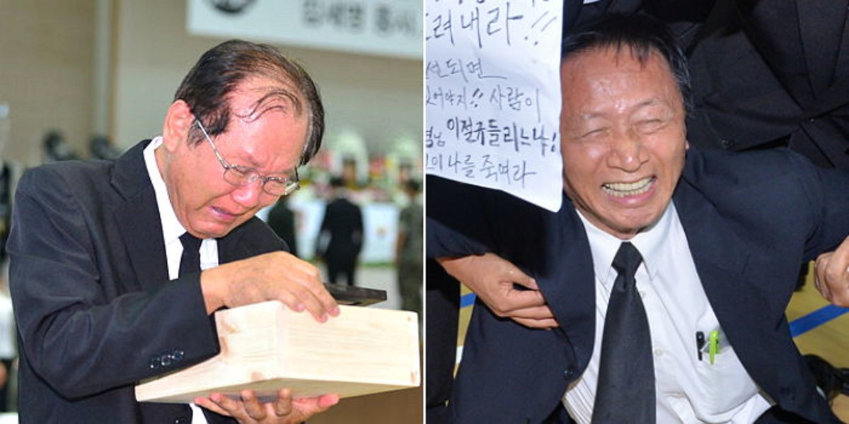 이날 김병준 자유한국당 혁신비상대책위원장이 주요 당직자들과 함께 조문에 나서자 박 병장의 할아버지는 "살인 헬리콥터 추방하라! 우리 아이를 살려내라!"며 눈물 섞인 분노를 토했다.