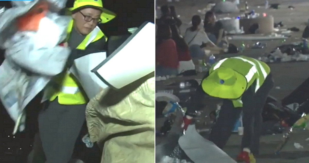 환경미화원은 "(매일) 한 9톤 정도 나온다"고 설명했다. 환경미화원들이 치우고 있는 바로 옆에서 피서객들이 어지르고 있었다.