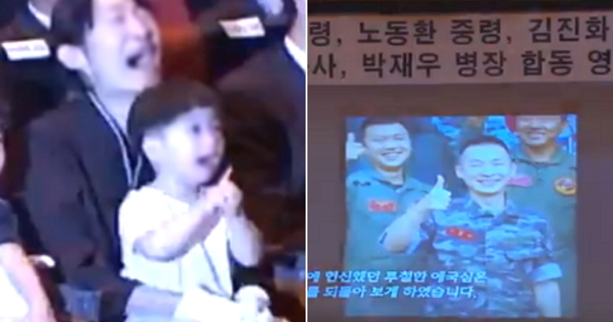 그때 큰 화면에 아빠의 사진이 등장하자 엄마 품에 안겨있던 어린 아들은 "아빠다! 아빠다!"라고 소리쳤다.