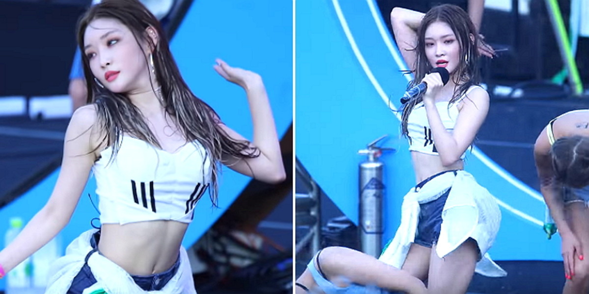 이날 무더위 속에 펼쳐진 공연에서 청하는 개미허리가 드러나는 하얀색 크롭탑과 연청 핫팬츠를 입은 채 등장했다.