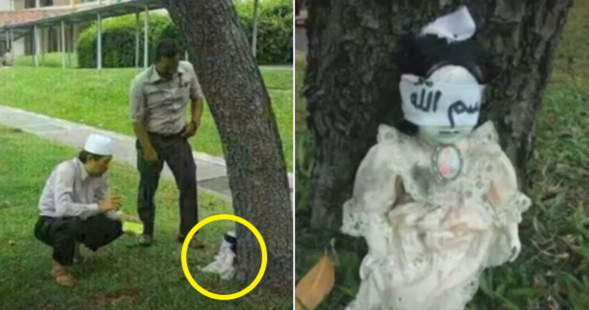 이후 여성은 "알라의 이름으로 앞이 안 보이게"라고 적힌 천을 인형의 눈에 감아 공원에 버렸던 것이다.