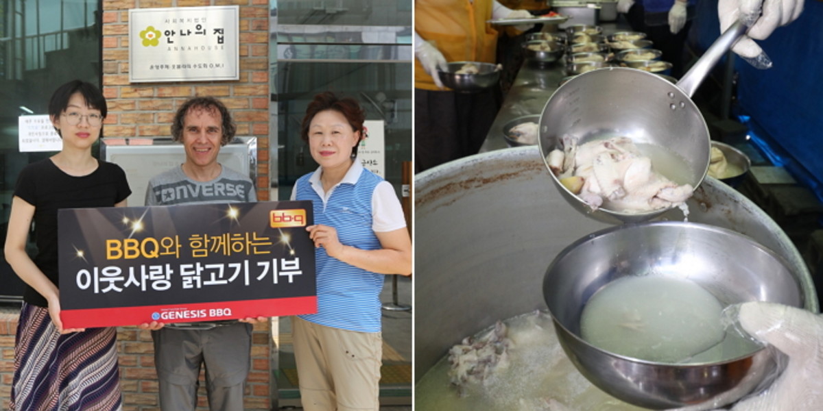 지난 27일 치킨 프랜차이즈 BBQ는 이날 중복을 맞아 노숙인 자활을 돕는 사회복지법인 '안나의 집'에 닭고기 600마리를 기부했다고 밝혔다.
