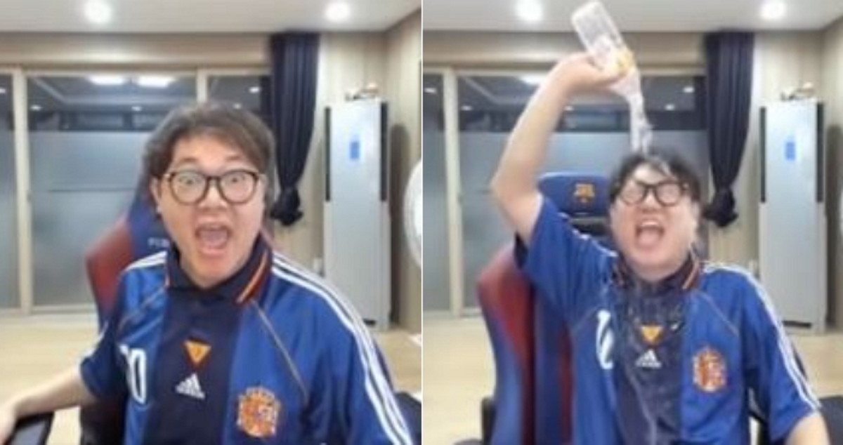 이어 3번째 골과 4번째 골을 연달아 실점한 그는 화를 주체하지 못하고 머리에 생수를 부어 폭소를 자아냈다.