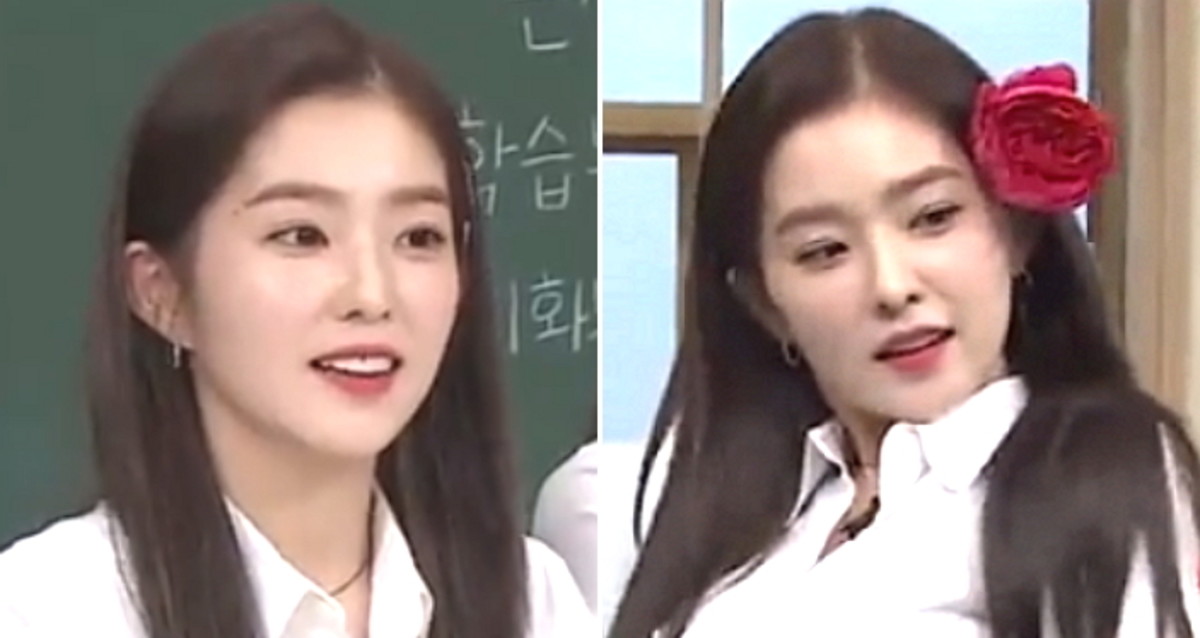 아이린은 '청순함의 대명사'인 긴 생머리에 교복을 입고 등장해 분위기를 압도했다.