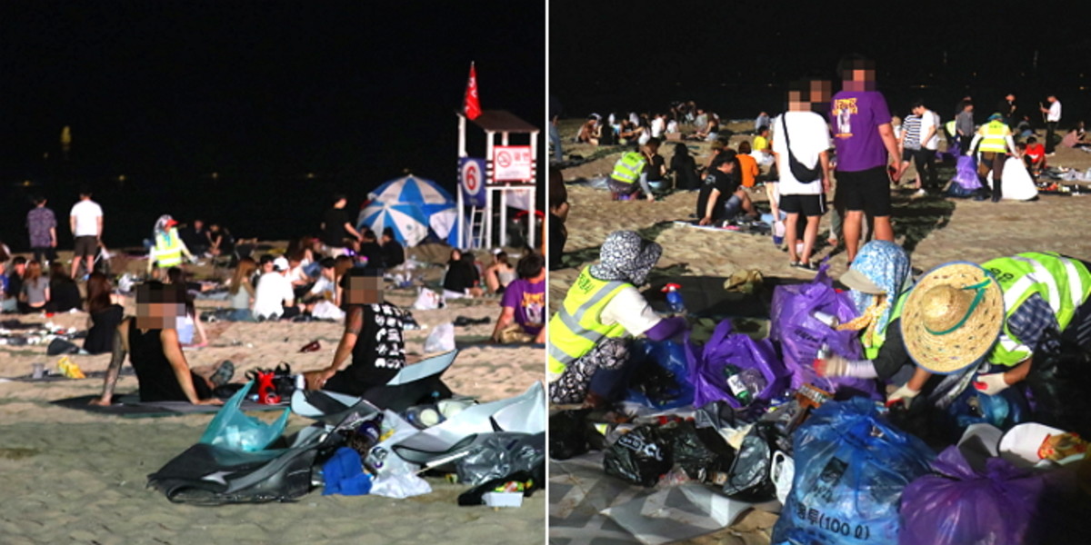 하룻밤 사이에 백사장에 쌓인 평균 3~4톤이 넘는 어마어마한 쓰레기양은 오롯이 40여 명의 미화원들이 수거해야 했다.