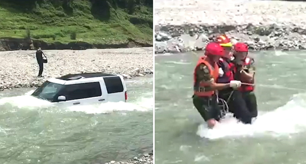 남성은 급히 강을 벗어나려 했지만 이미 차는 말을 듣지 않는 상태였다.