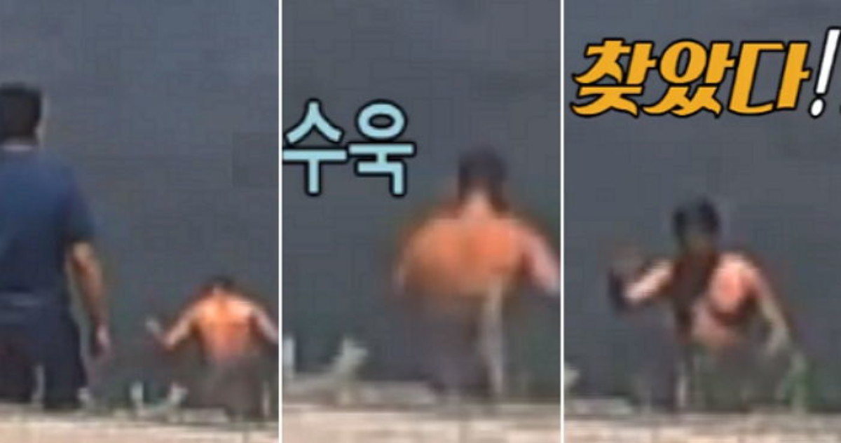 보다 못한 이 경사는 갑자기 경찰복을 훌훌 벗어던지기 시작했다. 용돈이 너무 소중한 아이를 위해 직접 하천으로 들어가기로 한 것이다.