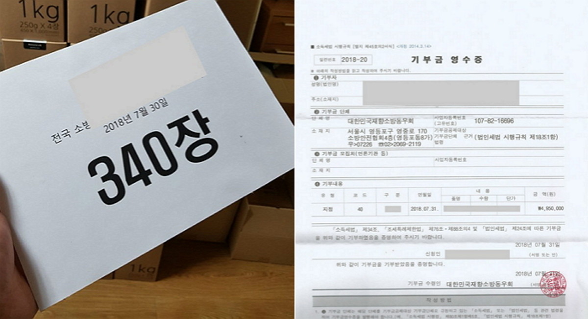 이 같은 결심에 따라 지난달 30일 생산된 수건 중 340장은 대한민국재향소방동위회에 전달됐다고.