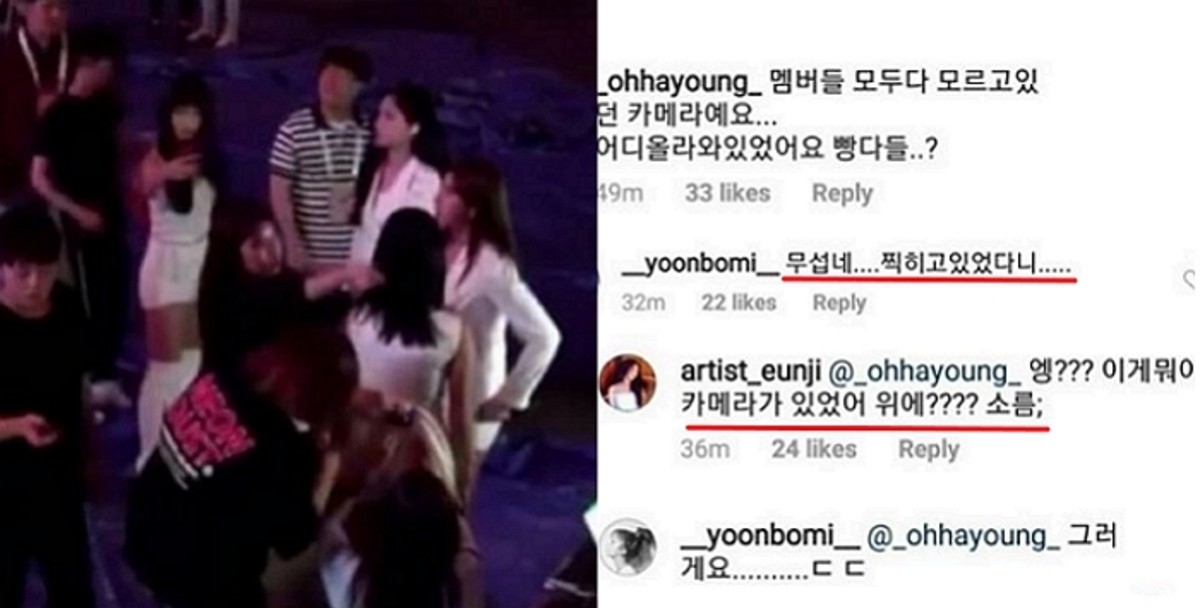 에이핑크 멤버 오하영은 인스타그램을 통해 "옷 정비하고 그런 게 나갔다면 큰일이었겠다"라며 "멤버들 모두 다 모르고 있던 카메라다"라고 놀란 반응을 보였다.