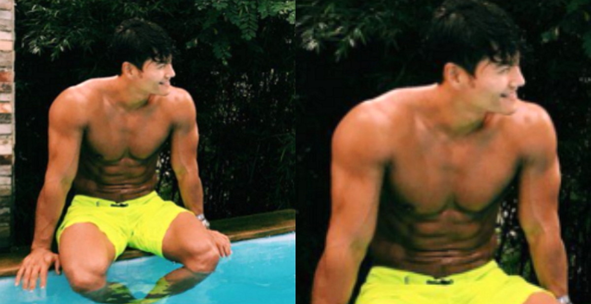풀장에 발을 담그고 있는 김종국의 복근이 시선을 모은다.