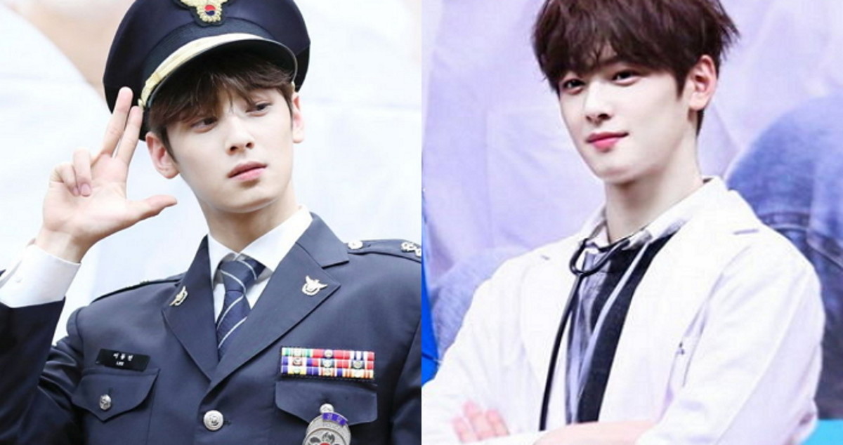 게재된 사진 속 차은우는 다양한 직업복을 입고 눈이 부실 정도로 완벽한 미모를 드러냈다.