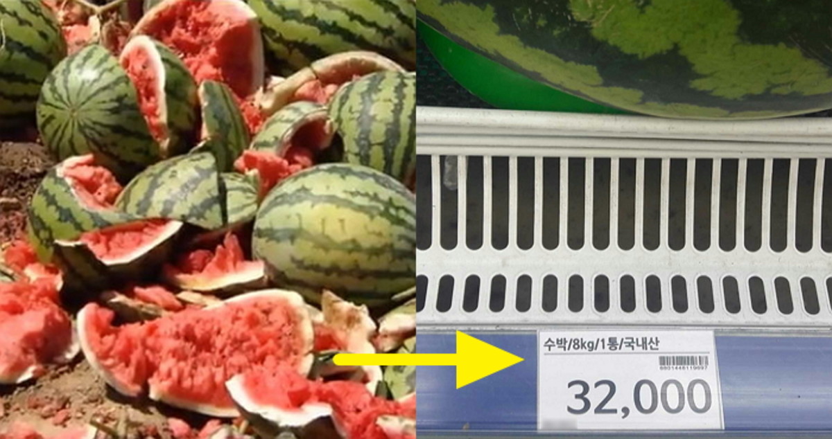 수박이 터져버려 출하할 수 있는 물량이 줄어들어 공급이 줄어들고 더운 날씨에 나타나는 수요 급증과 맞물려 가격이 폭등하는 것이다.