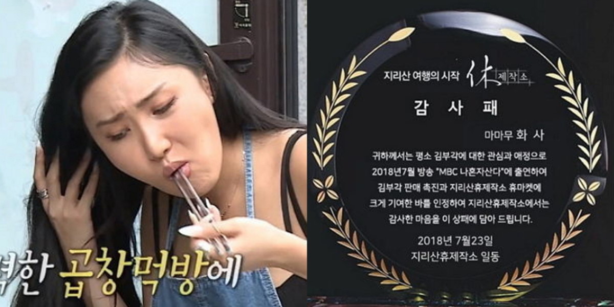 이어 재출연한 '나혼자 산다'에서 김부각 먹방으로 김부각의 판매촉진에 기여, 감사패를 받기도 했다.