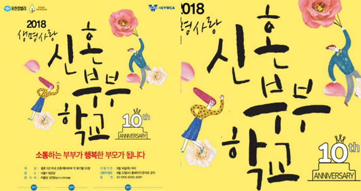 올해는 다음달 1일과 15일 양일간 총 3번에 걸쳐 서울 YWCA 대강당에서 신혼부부 150쌍을 대상으로 진행될 예정이다.