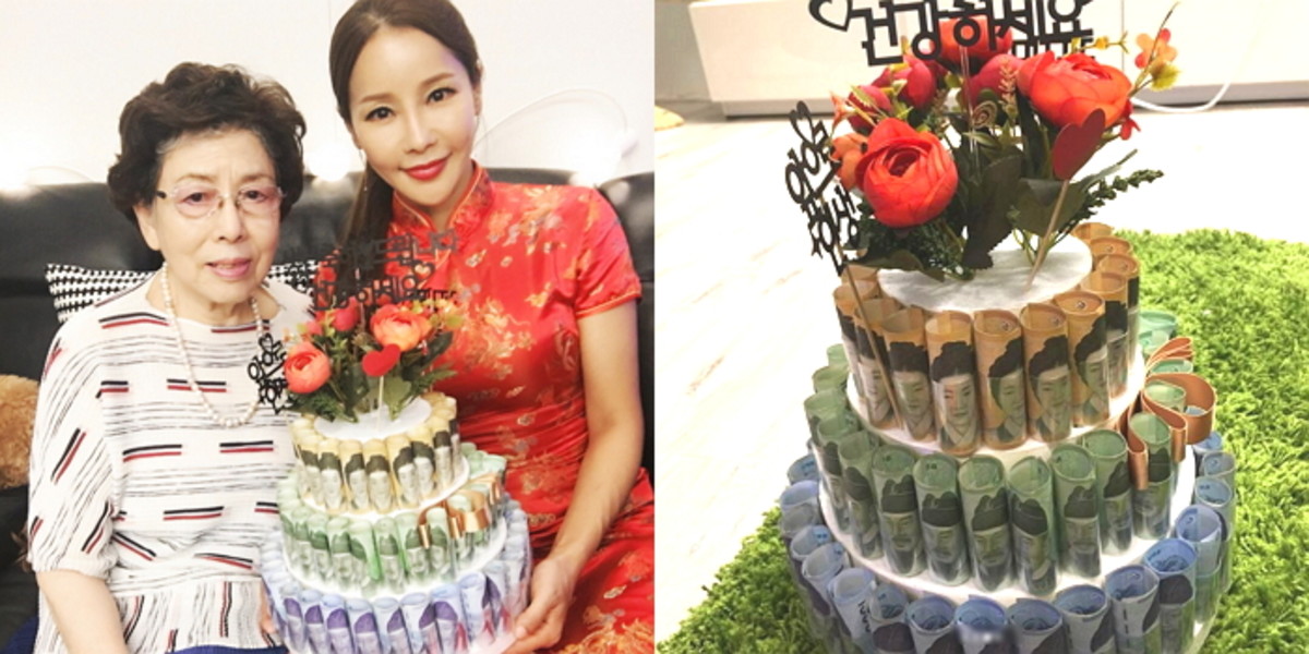 '3단 돈 케이크'는 1단은 천원권, 2단은 만원권, 마지막 3단은 5만원권으로 장식됐다.