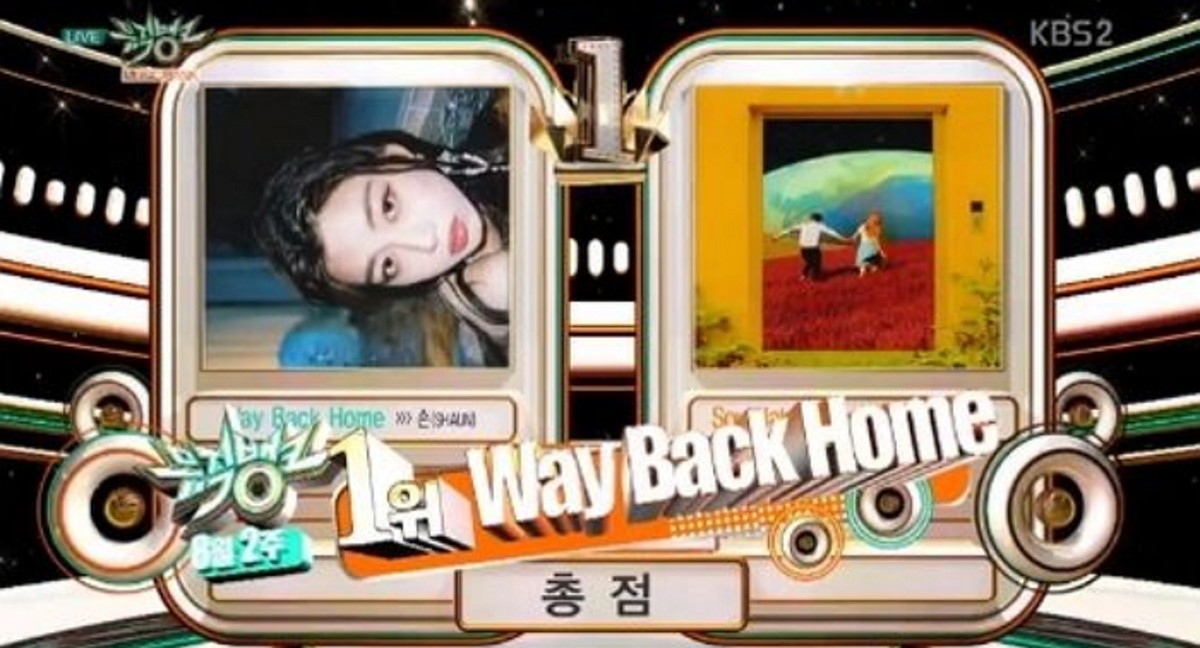 10일 방송된 KBS 2TV '뮤직뱅크'에서는 숀 '웨이 백 홈(Way Back Home)'이 지코 '소울메이트'를 제치고 1위를 차지했다.