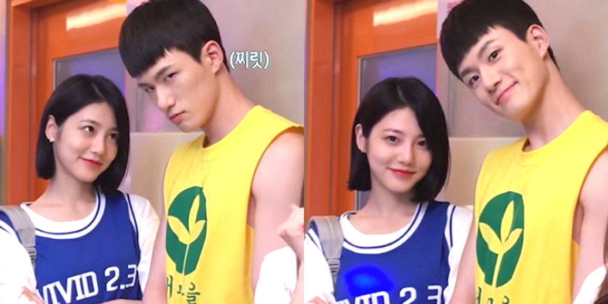 촬영 중간 카메라를 발견한 신예은은 옆에 있는 신승호의 팔을 '콕' 찌르며 포즈를 취했다.