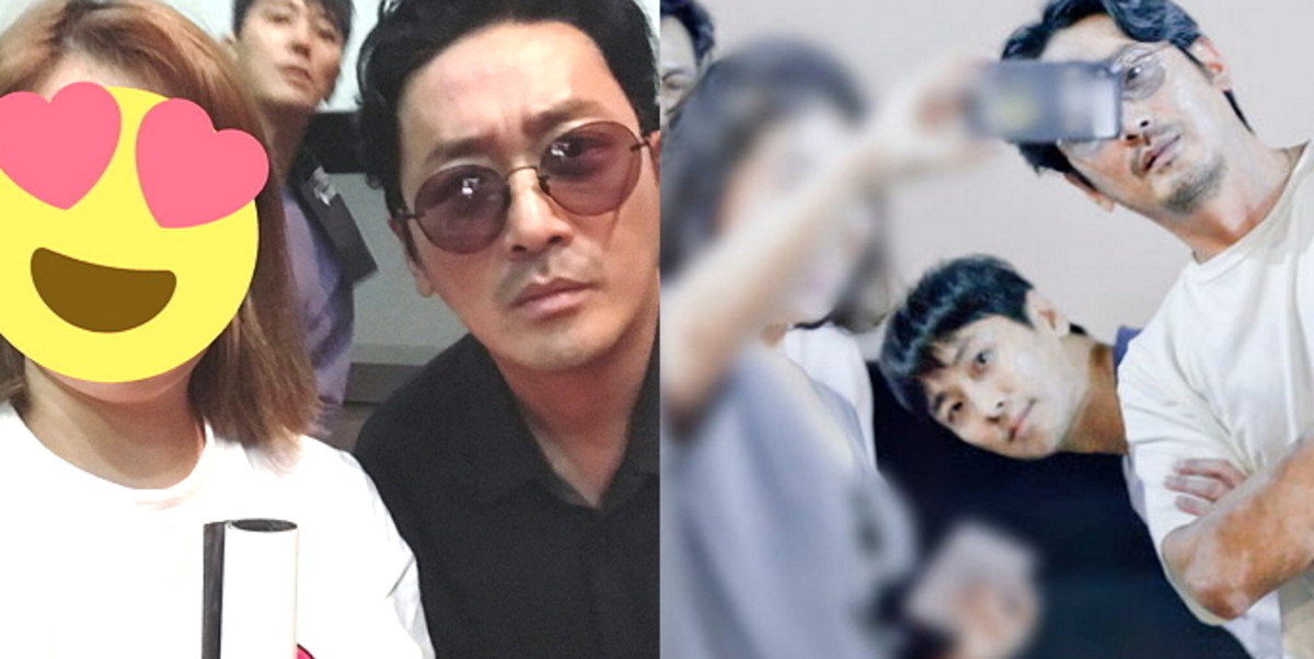 한 팬이 배우 이정재와 사진을 찍으려고 하자 하정우가 슬쩍 끼어들었다.