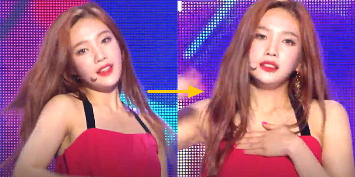 퍼포먼스가 이어지던 중 갑자기 조이의 상의가 흘러내리기 시작했다.