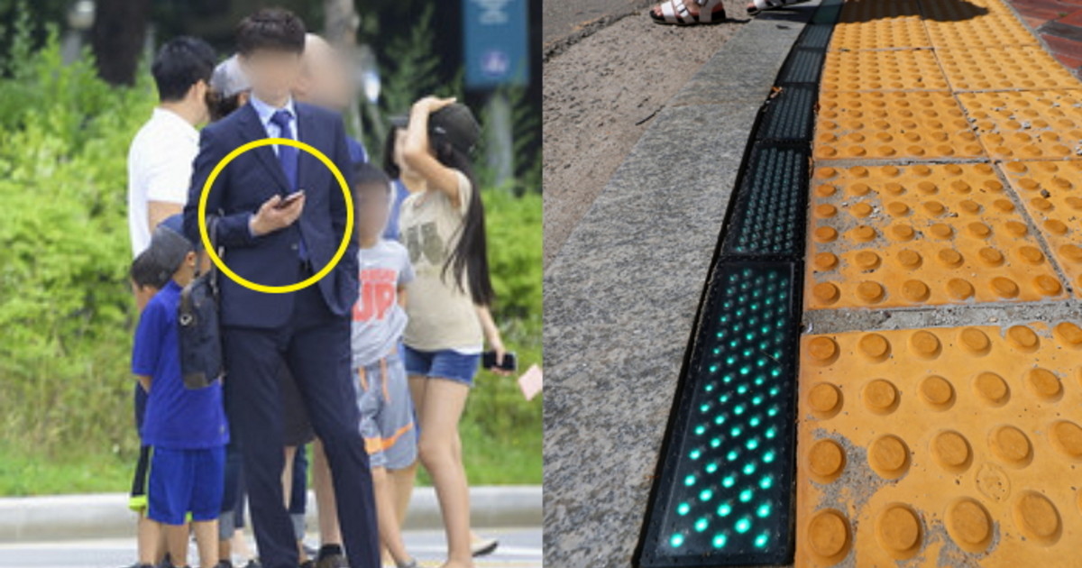 16일 KBS '뉴스광장'이 보도한 내용에 따르면 횡단보도 앞에 서 있는 많은 시민이 스마트폰을 보다가 자연스럽게 횡단보도를 건넌다. 새로 설치된 바닥 신호등이 있기 때문에 굳이 고개를 들어 보행신호를 확인할 필요가 없기 때문.